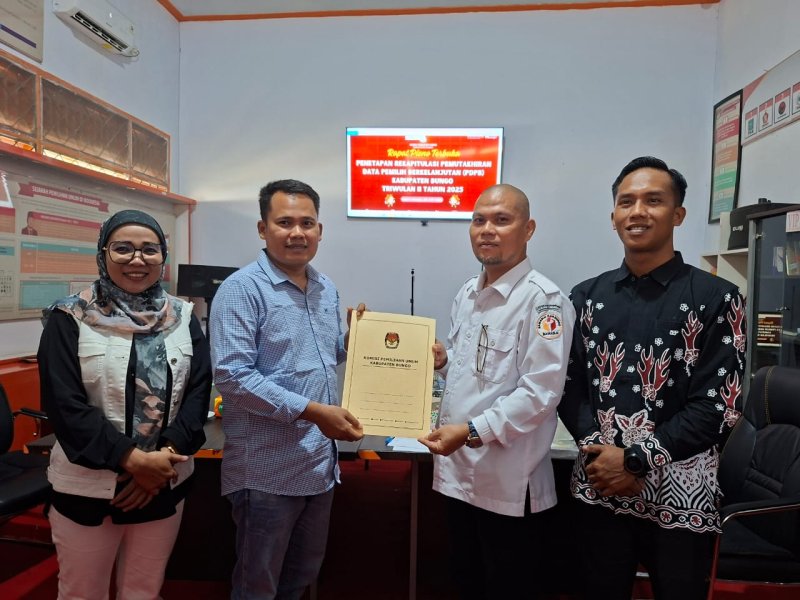 #temanpemilih Hari Rabu, 02 Juli 2025, KPU Kabupaten Bungo melaksanakan kegiatan Penetapan Rekapitulasi Pemutakhiran Data Pemilih Berkelanjutan (PDPB) Triwulan II Tahun 2025. Kegiatan tersebut adalah amanat dari Peraturan Komisi Pemilihan Umum (PKPU) Nomor 1 Tahun 2025 tentang Pemutakhiran Data Pemilih Berkelanjutan yang pelaksanaanya dilaksanakan setiap 3 bulan sekali. Pada kegiatan rapat pleno tersebut ditetapkan dengan Berita Acara (BA) Nomor 130/PP.07-BA/1508/2025 Tentang Rekapitulasi Daftar Pemilih Berkelanjutan Triwulan II Tahun 2025, ditetapkan sebanyak 261.918 pemilih dengan rincian pemilih laki-laki sebanyak 131.800 pemilih dan pemilih perempuan sebanyak 130.118 pemilih yang tersebar di 17 Kecamatan dan 153 Kelurahan/Desa. #kpumelayani
