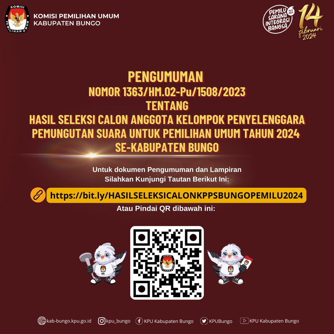 PENGUMUMAN HASIL SELEKSI CALON ANGGOTA KELOMPOK PENYELENGGARA PEMUNGUTAN SUARA UNTUK PEMILIHAN UMUM TAHUN 2024 SE-KABUPATEN BUNGO