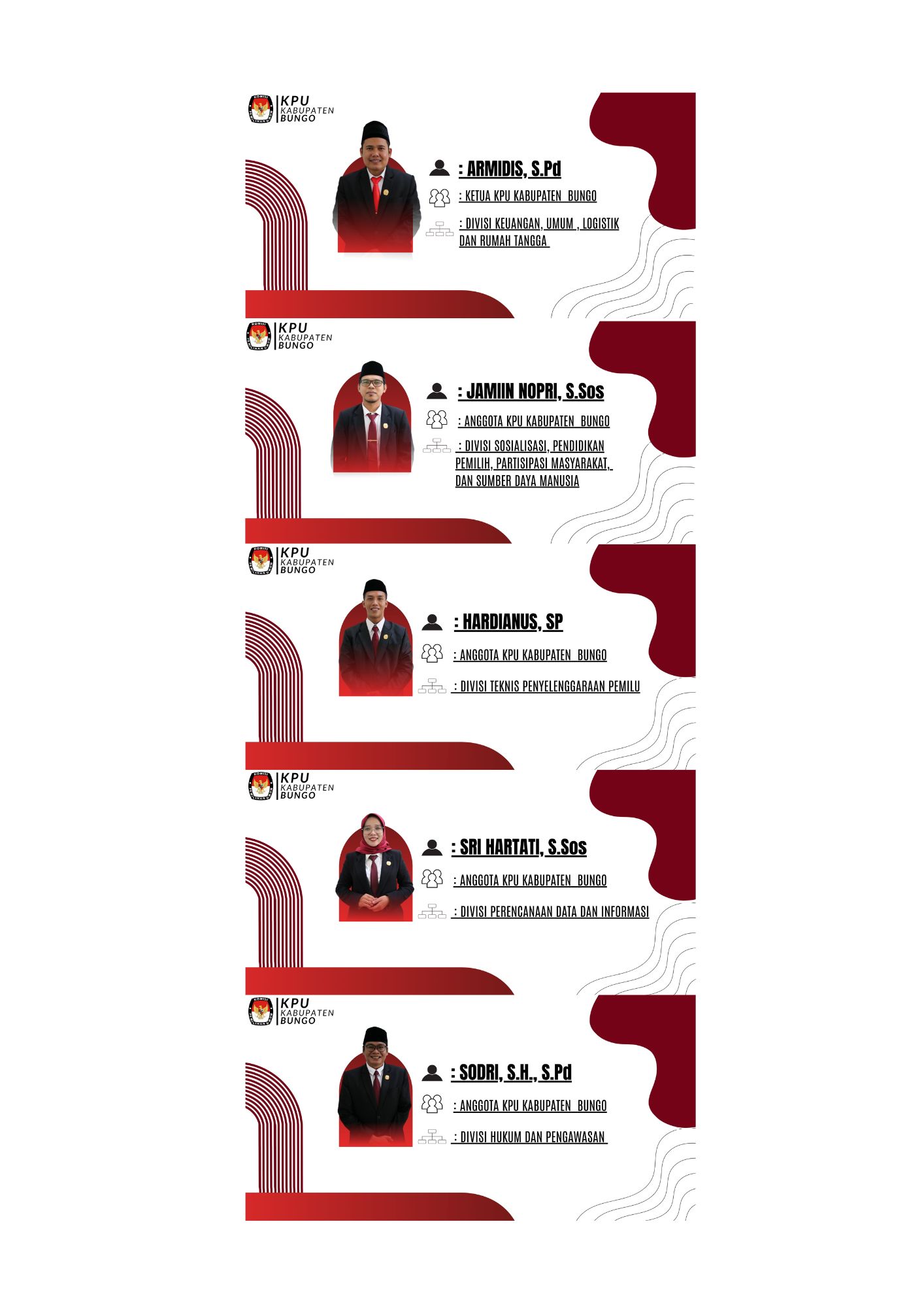 PROFIL LENGKAP KETUA DAN ANGGOTA KPU KABUPATEN BUNGO PERIODE 2023 - 2028: